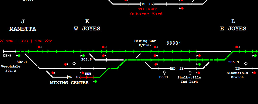 The Shelbyville Mixing Center can also be busy at times. Most trains will stop here to set out or pick up cars. Shelbyville is also where trains 275 and T79 originate. 287 terminates here.